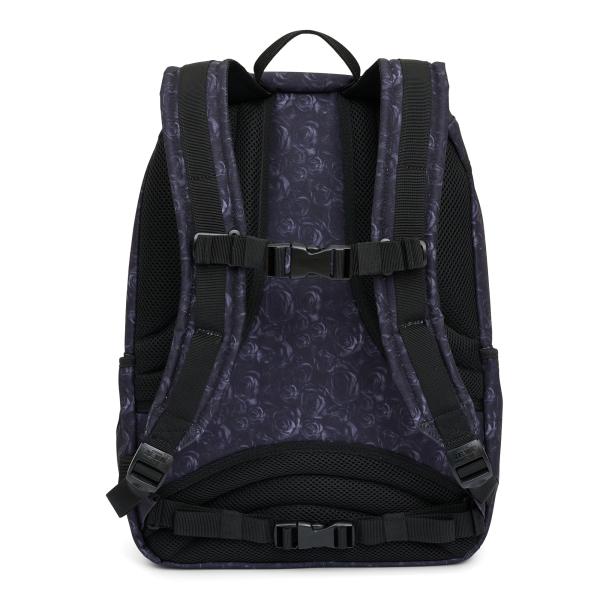 En tidløs rygsæk fra danske JEVA – i en sort variant med diskrete roser – det fineste mønster.
