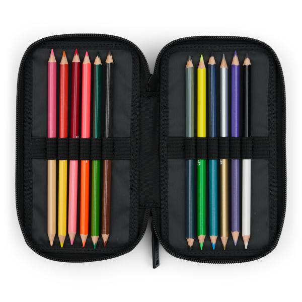 Penalhuset er udstyret med lækre kvalitetsblyanter og farveblyanter, der er ergonomisk rigtige og trekantede.