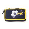 Football Striker mobiltasken er syet i smarte og praktiske materialer: vandtæt polyester med flot fodboldmønster i forskellige blå og grønne nuancer, samt med flot pang-gul kant og rem.