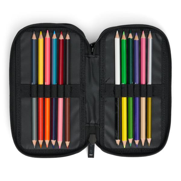 Penalhuset er udstyret med lækre kvalitetsblyanter og farveblyanter, der er ergonomisk rigtige og trekantede.