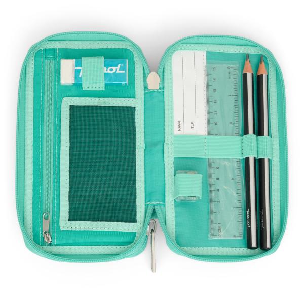 JEVAs penalhuse har deres helt egne udvendige lommer på JEVAs skoletasker - så er man fri for at penalhuset ligger løst nede i skoletasken.